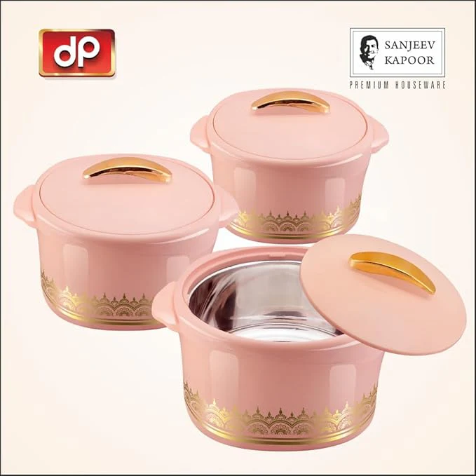 - ✅Colour: Pink ; Material: Inner Stainless Steel; Package Content: 3 - Piece Spectra Casserole (1500ML,2000ML,2500ML).
